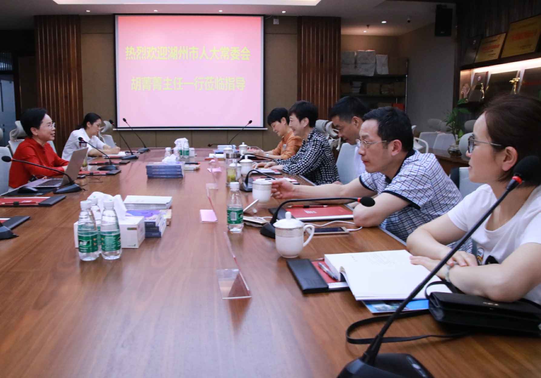 4月26日,湖州市人大常委会胡菁菁主任一行莅临星际体育·星际官方网站-星际体育(中国)总部考察指导,集团董事长、广东省湖州商会会长官金仙热情接待了胡主任一行。